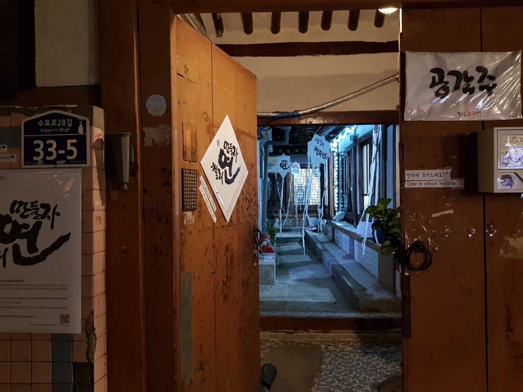 2018.11.09 마지막으로 공간주는 익선동 둥지를 떠납니다. 익선동에서 좋은 사람들을 많이 만났고, 내 집처럼 편안하게 왔다갔다한 공간주의 소중한 공간 중 한 곳이 되었습니다. 공간이란 것이 크던 작던 머무는 사람들의 온기들이 아름다운 일들을 내어주는 것 같습니다. 대문을 열고 바로 왼쪽 편의 1평 남짓의 단칸방에서 스쳐가는 수십명의 소중한 인연을 만났습니다. 원예골목만들기, 이리오너라 캘리, 마지막으로 만들자 ‘연’으로 귀한 사람들로 마지막까지 발걸음을 이어갔습니다.