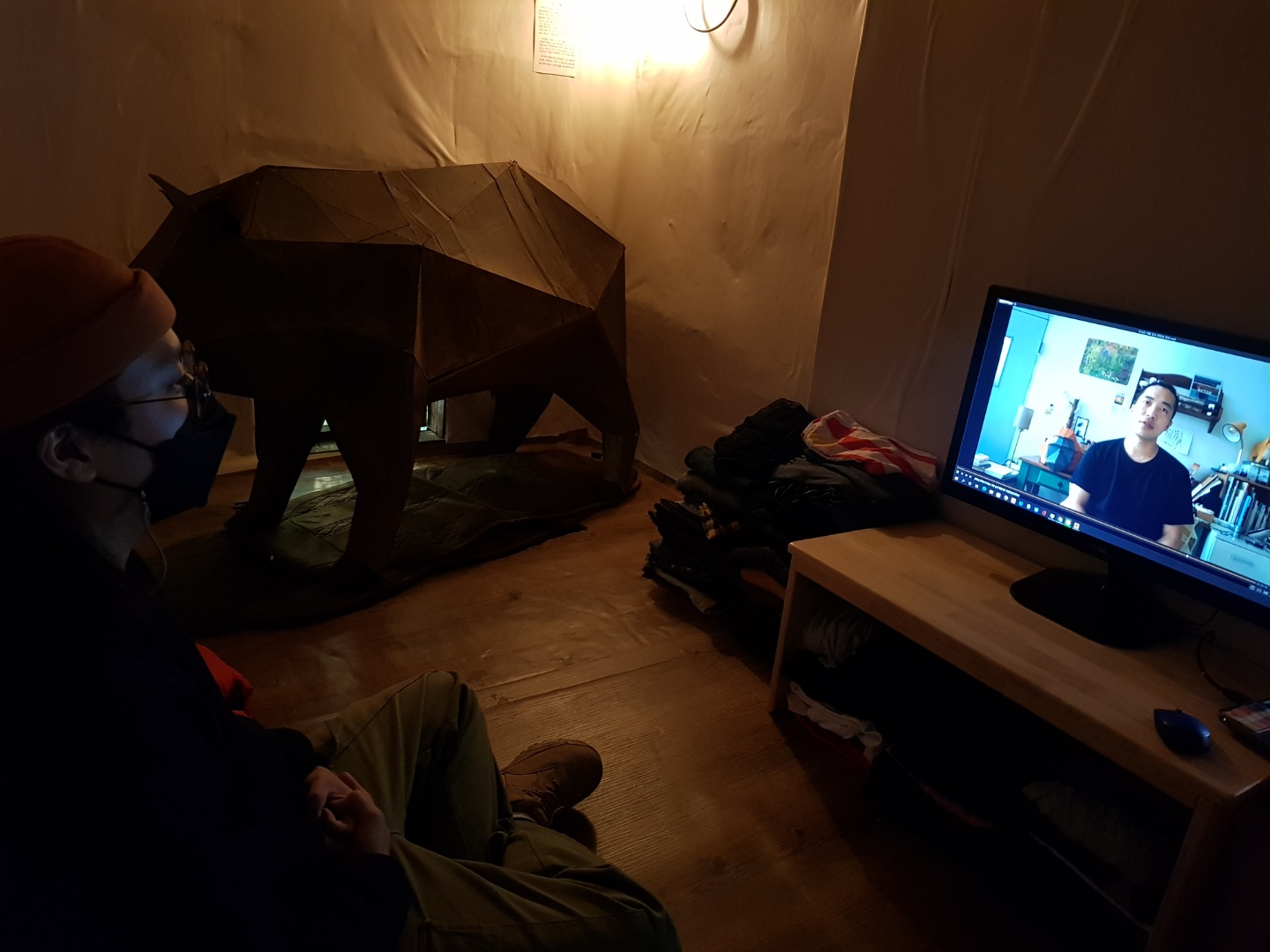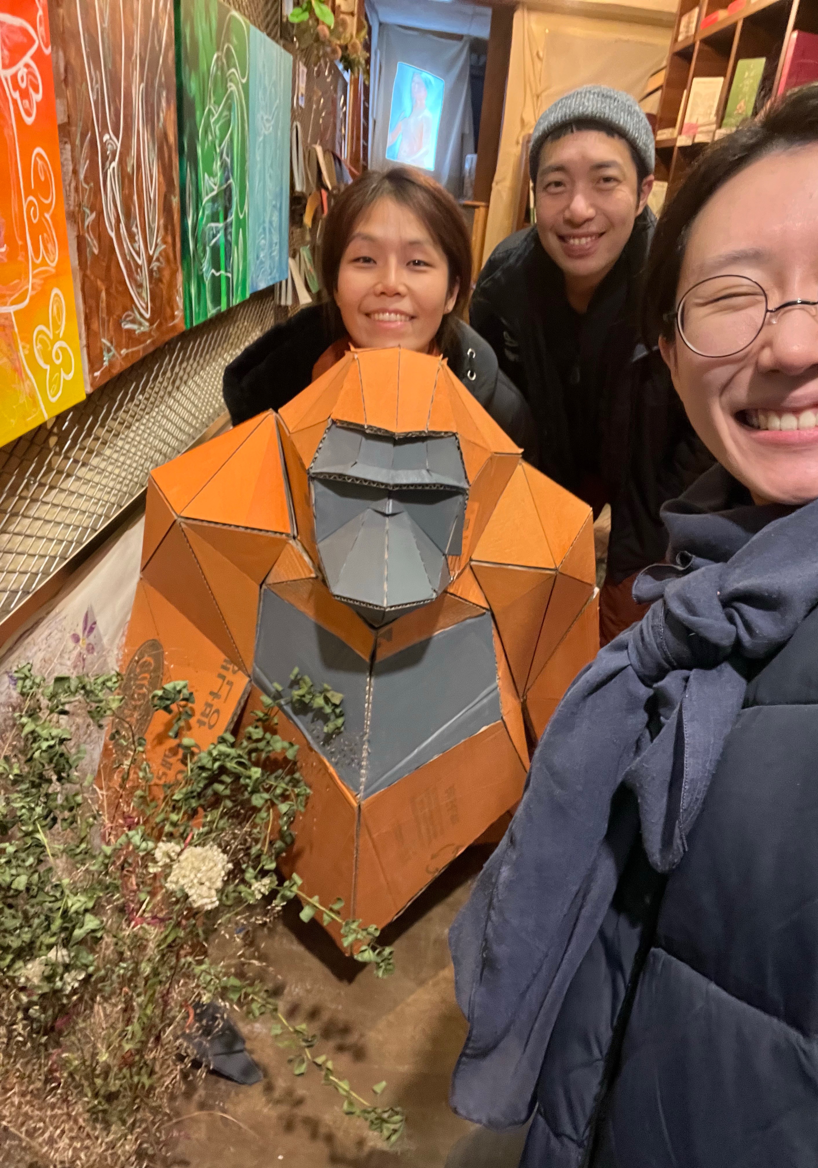 여러 순간 중에 굳이 나 다운 일을 찾는다면 얼마 전에 수원의 오래된 찻집에서 진행했던 개인전시이야기를 하고 싶다. 나는 환경이 비인간생명에게 주는 좋지 않는 영향에 대한 이야기를 주제로 하는 조형작업을 하는데, 내 작업을 전시하기 위해서 화석연료를 사용해야만 하는 점에 큰 모순감을 느꼈다. 그래서 실제크기로 만든 오랑우탄을 접혔다 다시 조립할 수 있는 형태로 만들어서 매일 운영되고 있는 기차를 이용해서 수원까지 이동하고, 거기서 팔달문에 위치한 전시공간까지 걸어서 운반했다. 나는 나의 돈과 마음과 육체가 감당할 수 있겠다 싶은 일은 해봐야 직성이 풀리는 성격을 가지고 있고, 꽤 만족스러운 경험을 남겼다.