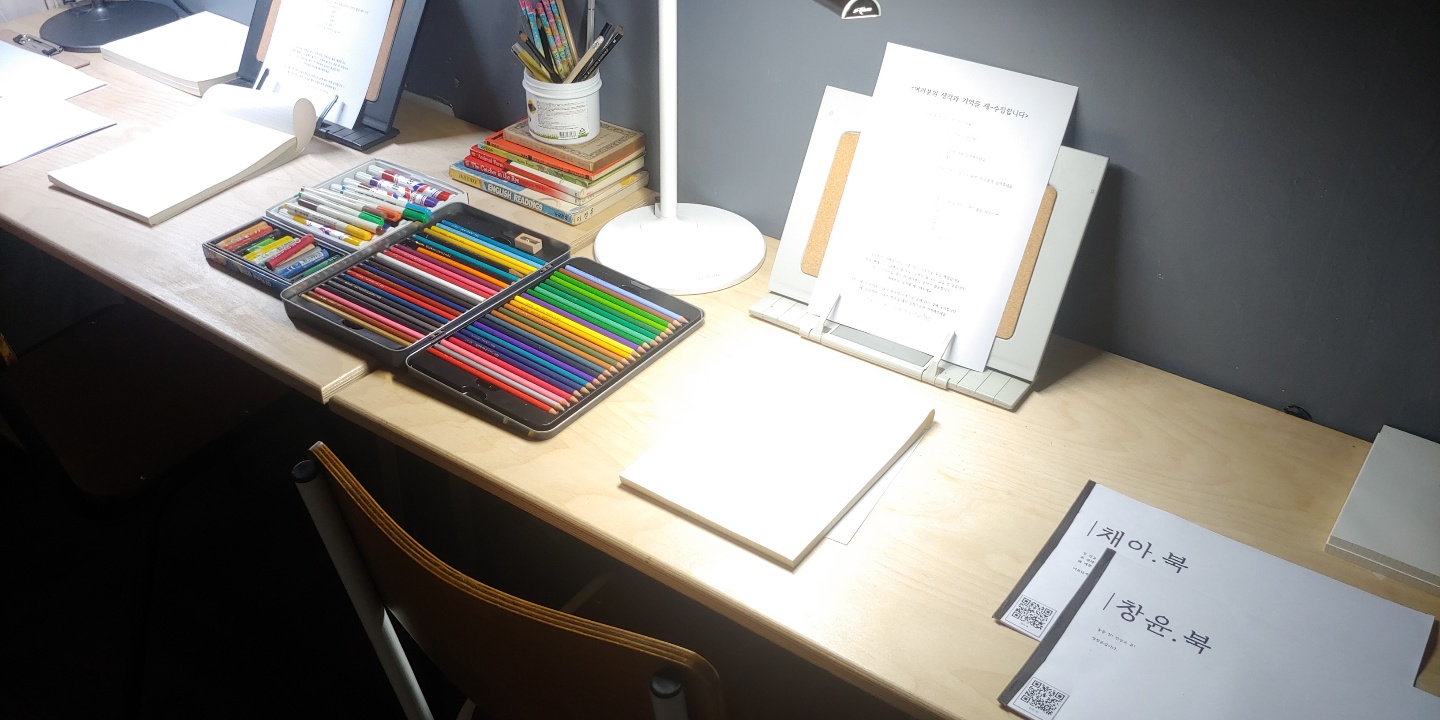 제가 요즘 머물고 있는 곳은, 장소로 설명하자면 전시장, 굳이 장소를 언급하지 않자면 동그라미 안에 있는 것 같습니다. 아무래도 요즘 전시장에 상주하는 시간이 많다 보니, 전시장에 가만히 앉아 다양한 생각을 합니다. 전시장은 아담하고 포근하면서, 오시는 분들의 발걸음에 공기가 조금씩 바뀌는 걸 느끼면서 지내고 있습니다. 공유하려는 생각이나 창작물들이 지금보다 더 나아가야 한다는 느낌도 강하게 받죠.
