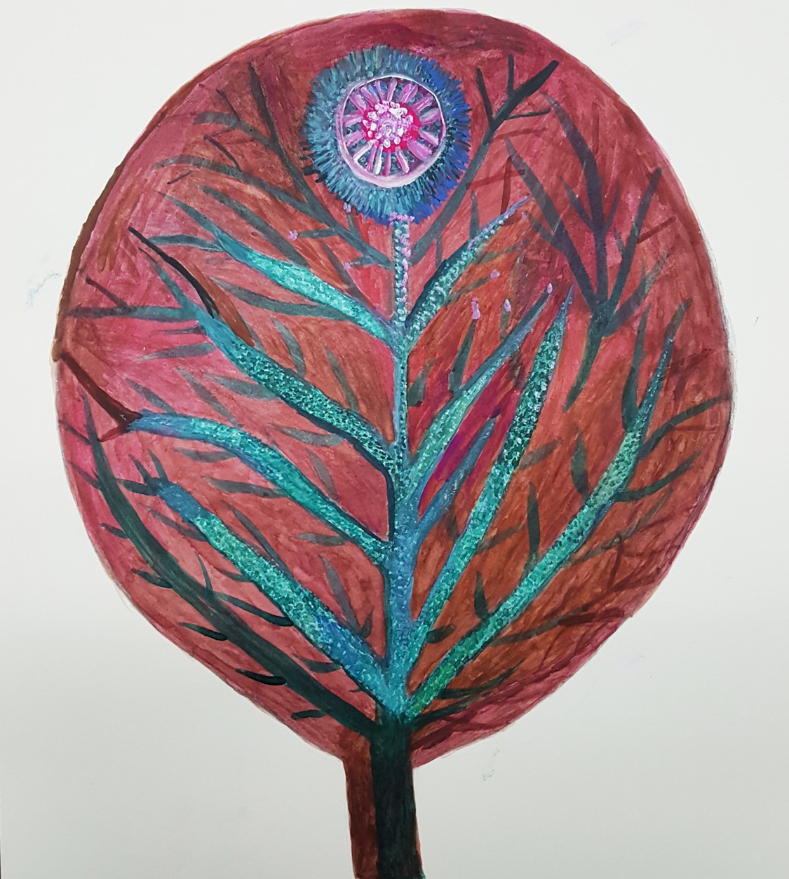 꽃과 나무는 그녀의 일부이자 삶이다. 커다란 나무는 여든여덟 할머니의 삶을 고스란히 볼 수 있다. 나무는 할머니의 삶을 포함한 우주이자 하나의 생명체다. 그리고 순수함이다. 그 안에서 우리는 서로 관계를 맺으며 행복하게 살고 있는 오늘이기도 하다. 할머니의 긴 삶속에서 배어나온 따스함을 스케치북에 옮긴다.